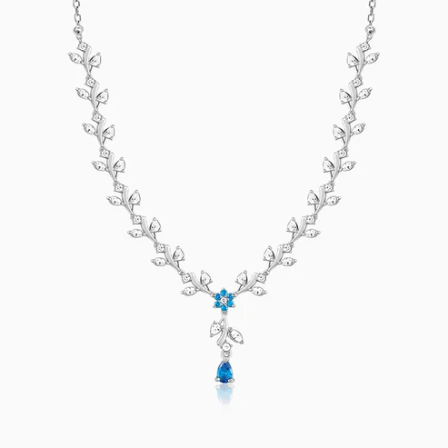 Silver Zircon Winding Wave Ring + Silver Mystic Blue Leaf Pendant with Link Chain